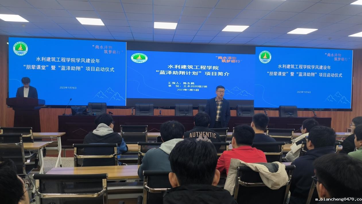 为充分发挥学生党员干部在思想引领、学业帮扶、学科竞赛、社会实践等方面的榜样示范和朋辈引领作用,促进同伴之间的互相支持和共同成长进步。11月17日下午,水利建筑工程学院“蓝泽助翔”朋辈帮扶计划在学院朋辈课堂教师正式启动。学院党委副书记娄哲,团委书记、学工办负责人张丽君及全体辅导员参加启动仪式。仪式由该项目学生负责人陈东鹤主持。