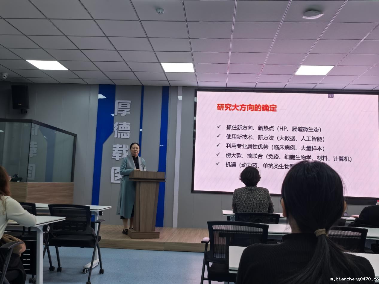 会议还特别邀请医学院陈雪玲教授分享了项目申报经验并作基金撰写培训。陈老师结合自身申报经验,从指南的理解、题目的确定、科学问题的凝练、研究内容的可行性和创新性等方面进行了系统全面的阐述,对参会教师们进行项目申报具有很强的借鉴意义和参考价值。