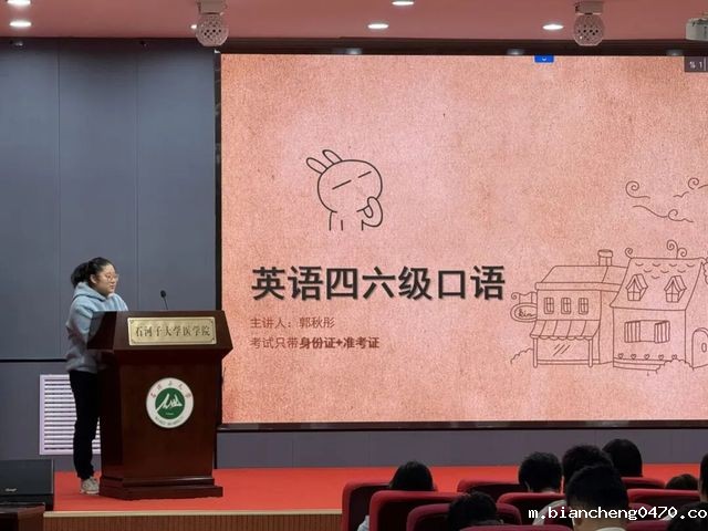 2025年10月19日15时30分,必威betway西汉姆联网站医学院、临床医学院“词海拾珠玉,题山见真章”英语四六级讲座在南区学术报告厅如期启幕。讲座邀请李姝瑗、郭璐涵、郭秋彤三位优生围绕四级笔试、四级口试、六级笔试、六级口试四项重要考试,结合自身备考经验分享学习心得,为在场150余名同学带来针对性指导。